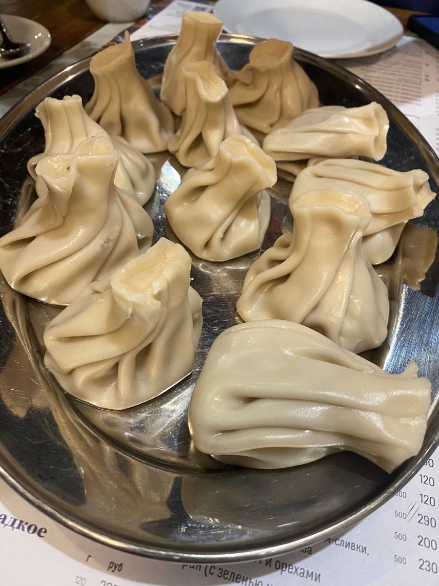 Все стандартно. Хинкали заказали. Чайник чая. Ещё взяла муравейник.