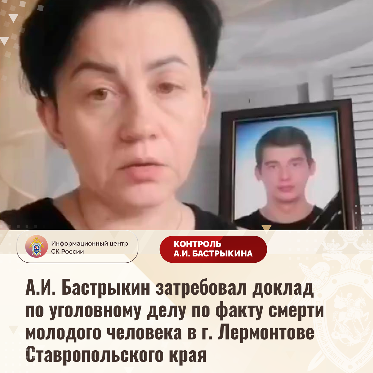 А.И. Бастрыкин затребовал доклад по уголовному делу по факту смерти молодого человека в г. Лермонтове Ставропольского края В социальной сети размещено видеообращение к Председателю СК России А.И. Бастрыкину от жительницы Ставропольского края по факту смерти 23-летнего сына. В феврале текущего года в городе Лермонтове Ставропольского края двое мужчин, ранее судимых за совершение убийства, в ходе совместного распития спиртных напитков жестоко избили потерпевшего. От полученных телесных повреждений молодой человек спустя непродолжительное время скончался. После этого фигуранты переместили его тело на контейнерную площадку. Обратившаяся выражает несогласие с квалификацией преступления. В СУ СК России по Ставропольскому краю по данному факту расследуется уголовное дело по ч. 4 ст. 111 УК РФ (умышленное причинение тяжкого вреда здоровью, повлекшее по неосторожности смерть потерпевшего). В отношении фигурантов избрана мера пресечения в виде заключения под стражу. Председатель Следственного ко