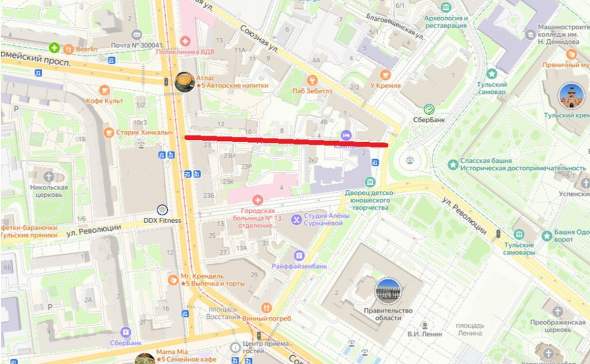 В Туле 17 и 18 апреля в Денисовском переулке ограничат движение транспорта