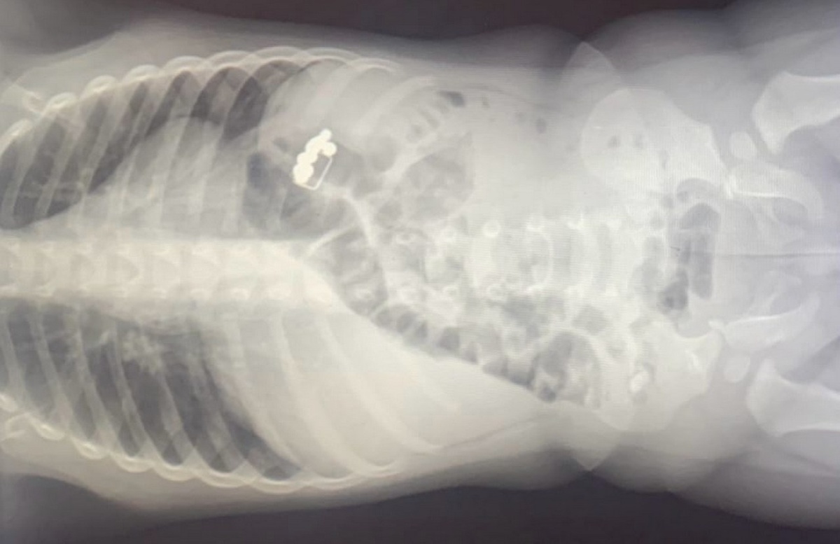 С жалобами на боли в животе, частый жидкий стул (до 5 раз в сутки) и повышенную температуру тела до 38,2°C родители двухлетнего ребёнка обратились к врачам. Первоначально предполагалось, что у малыша острая респираторная вирусная инфекция (ОРВИ). Однако, 1 апреля ребёнку провели рентгенографию грудной клетки, на которой в желудочно-кишечном тракте были обнаружены инородные предметы: восемь магнитов и даже канцелярская скрепка. Малыша направили в Областную детскую клиническую больницу №2 (ОДКБ №2), где детские хирурги подтвердили наличие инородных тел и приняли решение о госпитализации для наблюдения и лечения. Под общей анестезией эндоскопист Александр Климов в срочном порядке извлёк магниты и скрепку. Во время операции были также обнаружены два небольших пролежня на стенке желудка. После операции был сделан повторный рентгеновский снимок, который выявил наличие ещё двух магнитов. Они вышли самостоятельно после проведения очистительной клизмы. По словам детского хирурга Владимира Кораб