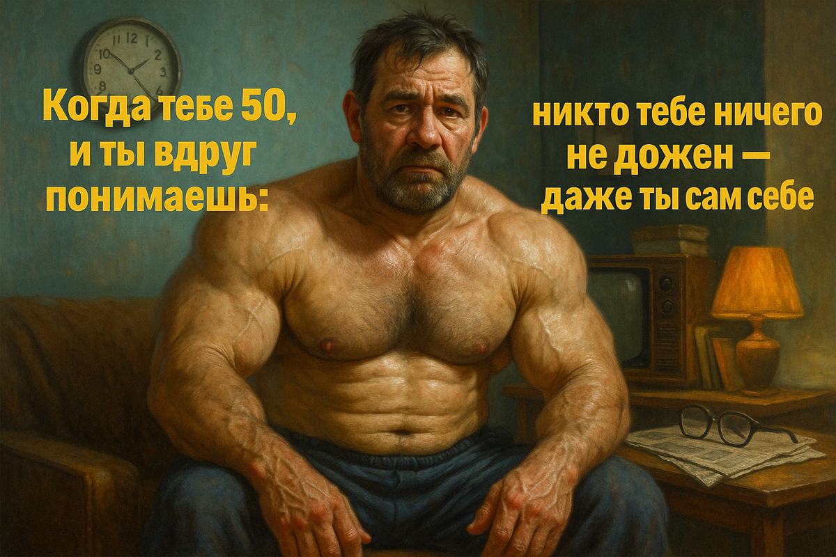 Знаешь, я раньше думал, что в 50 у мужика должно быть всё: стабильность, статус, понимание жизни, ну и бицепс хоть какой-никакой. А потом бах — и сидишь, уставившись в потолок на кухне, в одних трениках, и ловишь себя на мысли: а чё я вообще кому-то доказываю? Я это к тому, что раньше в башке было — надо! Надо быть примером, надо держаться, надо зарабатывать, быть “мужиком” с большой буквы М. А теперь всё чаще возникает странное спокойствие: «да никто мне ниче не должен... и я — тоже». Но вот только тело думает иначе. Оно, зараза, требует внимания. Жрать меньше, спать больше, спину не кривить, разминаться, мышцы тянуть. А ты вроде как и не хочешь ничего уже. Ну не прет. И вот тут начинается эта тонкая грань — между зрелостью и апатией. История одна. Правда простая Есть у меня сосед — Гена. 53 ему. Бывший слесарь, пузо, сигарета, но дух… дух у него бодрый. Говорит: "Я понял — как только перестал гоняться за тем, чтоб быть молодцом — мне полегчало". Но не скатился, кстати. По вечерам с