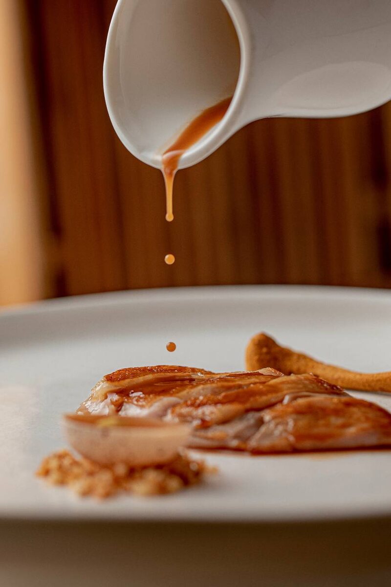 "Подкопчённая грудка перепёлки" — философия в тарелке. ⠀ В сете Twins Easy шеф Виталий Савельев представляет блюдо-метафору, в котором каждая деталь рассказывает историю жизни благородной птицы: • Подкопчённая грудка — главная героиня этого блюда • Перепелиное консоме — концентрированная эссенция вкуса • Перепелиный холодец — изысканная интерпретация яйца • Сублимированная икра из баклажанов — неожиданный финальный аккорд ⠀ Особый штрих: 🍷 Соус из перепелиных костей и выдержанного портвейна 🍞 Хрустящие пикантные сухарики ручной работы ⠀ "От яйца до косточки — полный цикл вкусового совершенства" ⠀ Это блюдо — доказательство, что даже скромную перепёлку можно превратить в гастрономический шедевр. ⠀ 📩 Забронировать стол +7 499 112 33 11
