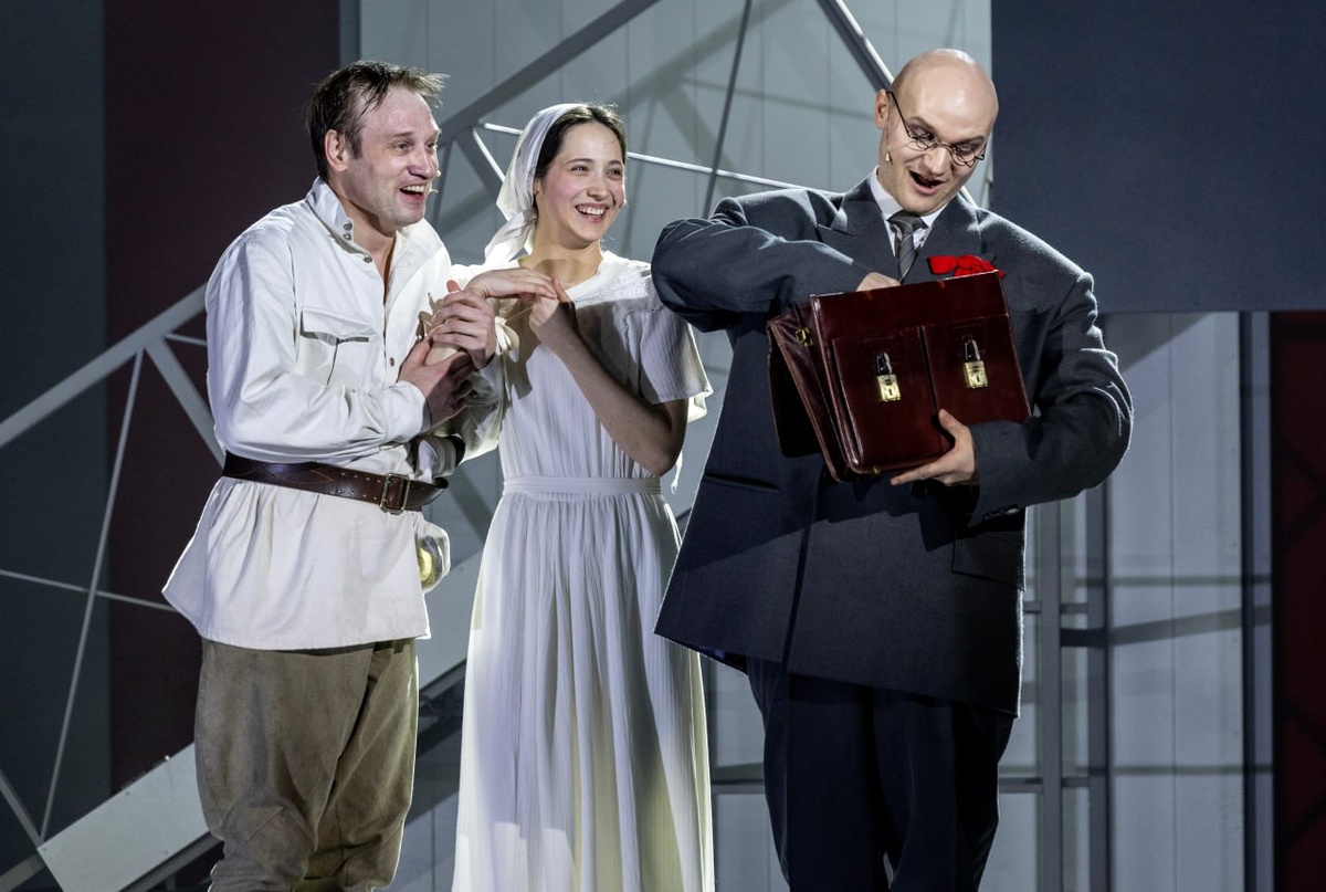 Каждый показ спектакля «Щастье!» Аллы Сигаловой – это настоящее яркое событие в театральной жизни! И каждый спектакль неповторим, ведь всякий день мы меняемся, меняется настроение, состояние, а значит, появляются едва уловимые нюансы в игре артистов и восприятии зрителей. И конечно, в разных составах исполнителей спектакль, скрупулёзно художественно выстроенный, целостный, все же воспринимается по-разному: не «лучше» или «хуже», а именно по-разному. Рады поделиться составом на 20 апреля. В роли Ивана Присыпкина – Михаил Тройник, Зоя Березкина – Дарья Балабанова, Олег Баян – Антон Аносов, Эльзевира Ренессанс – Глафира Лебедева, Мадам Ренессанс – Анастасия Светлова, Секретарь товарища Лассальченко - Дмитрий Подадаев, Шафер – Иван Расторгуев, Беспризорник – Ксения Комарова, Режиссер театра «Синяя блуза» - Ваня Пищулин, Милиционер – Владимир Прокошин. А ансамбль в спектакле «Щастье!» не только дополняет действие, но и задает своей слаженной работой неповторимую атмосферу и поддерживает