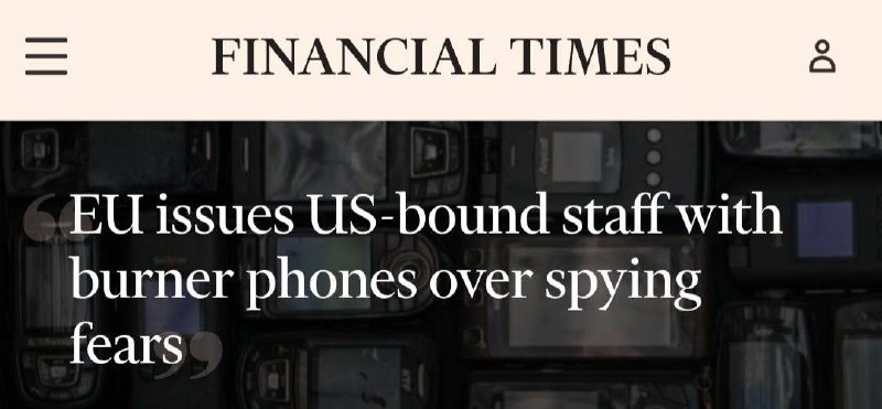 «ЕС выдал направляющимся в США сотрудникам одноразовые телефоны из-за риска шпионажа»: Европейцы теперь опасаются при поездках в США также, как и во время визита Китай. «Еврокомиссия выдает направляющимся в командировки в Соединенные Штаты сотрудникам одноразовые телефоны и простейшие ноутбуки из соображений безопасности. По словам четырех источников, знакомых с ситуацией, комиссары и старшие должностные лица, которые отправятся на весенние заседания МВФ и Всемирного банка на следующей неделе, получили новые инструкции, предусматривающие отключение телефона при прохождении границы, а также использование защитных чехлов для предотвращения слежки в тех случаях, когда мобильное устройство остается без присмотра. Отмечается, что аналогичные меры принимались лишь в тех случаях, когда представителям Евросоюза предстояло совершить поездку в Китай или на Украину, куда обычные гаджеты запрещают ввозить из-за опасений слежки со стороны России или Китая» 👊 НАСОНОВ 🔴