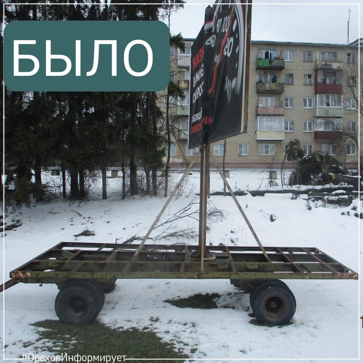 Прицеп с установленным на нем баннером увезли с улицы Московской.