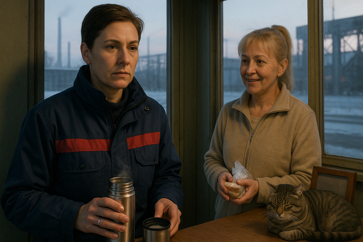 На проходной металлургического завода было тепло и пахло машинным маслом. Ольга невольно глянула на наручные часы — 5:47. Через тринадцать минут начнётся поток. Первыми пойдут ремонтники, потом технологи, потом рабочие основного цеха.