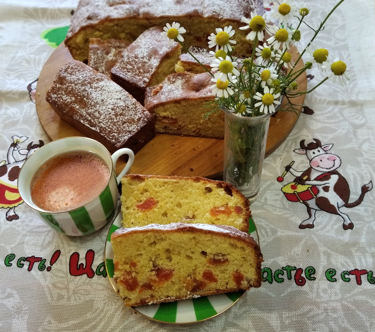 6. Готовый пирог можно немножко посыпать сахарной пудрой, а можно и не посыпать, он и без этого получается очень вкусным. Чуть влажный, при разрезании не крошится, очень ароматный.