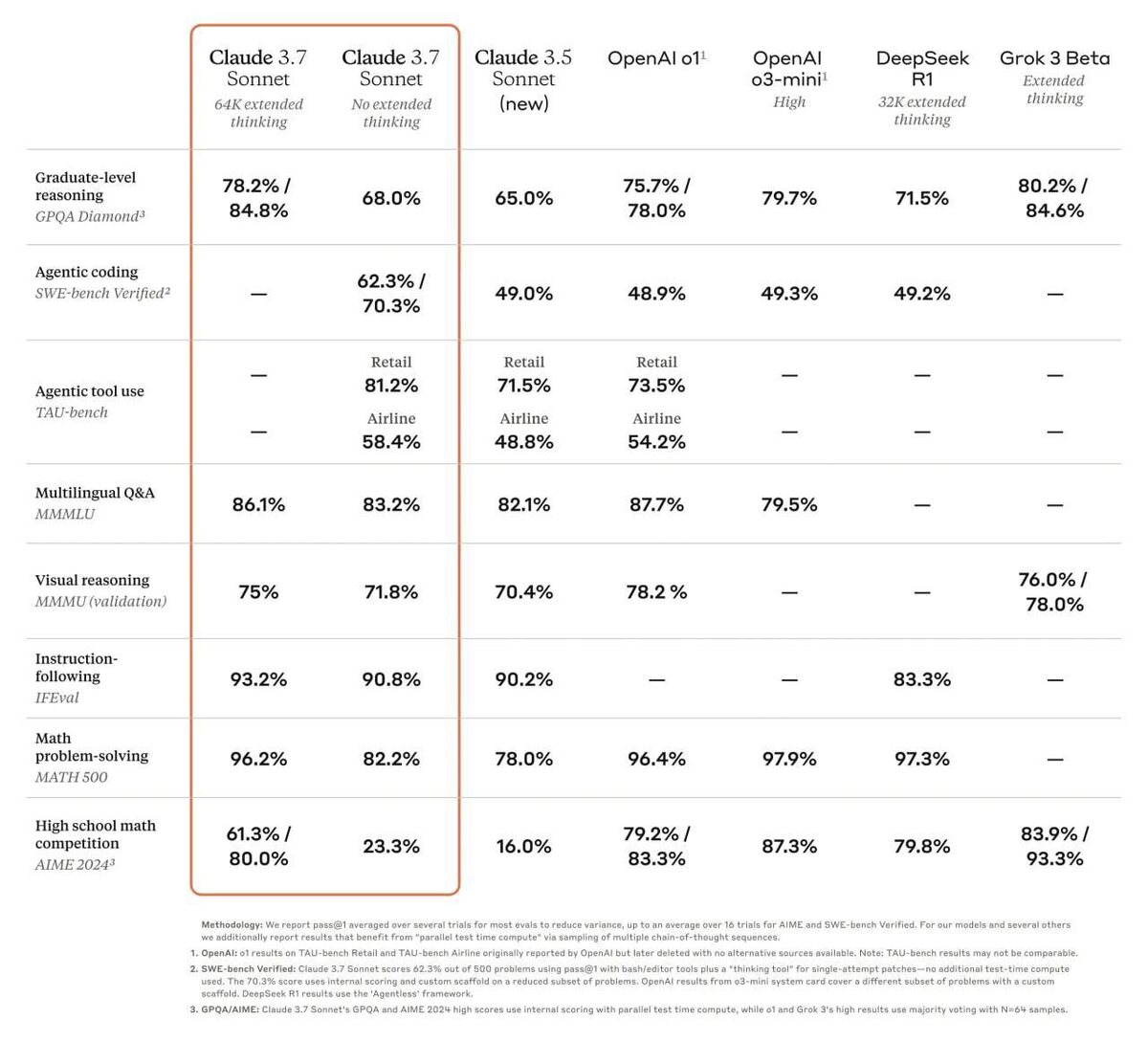 🖥 Anthropic выпустили Claude 3.7 Sonnet Стартап Anthropic выпустил новую версию своей ИИ-модели Claude 3.7 Sonnet. Компания перескочила в нумерации через версию 3.6 — ее место «неофициально» занимает промежуточная Claude 3.5 Sonnet (new). Главные особенности: ➡️ Claude 3.7 Sonnet — первая «гибридная» модель, которая может как отвечать быстро в стандартном режиме, так и рефлексировать перед ответом, добиваясь лучших результатов в математике, программировании, физике и других задачах. «Как люди используют один мозг и для быстрых ответов, и для глубоких рассуждений, мы считаем, что рассуждение должно быть интегрировано в передовые модели, а не быть полностью отдельной моделью», — объясняют разработчики. ➡️ Новая модель примерно в 1,5 раза опережает OpenAI o3-mini-high и Grok 3 в SWE-bench Verified на автономное написание кода, при этом отстает от других рассуждающих моделей в математических бенчмарках MATH 500 и AIME 2024. В Anthropic прямо заявляют, что специально оптимизировали мо
