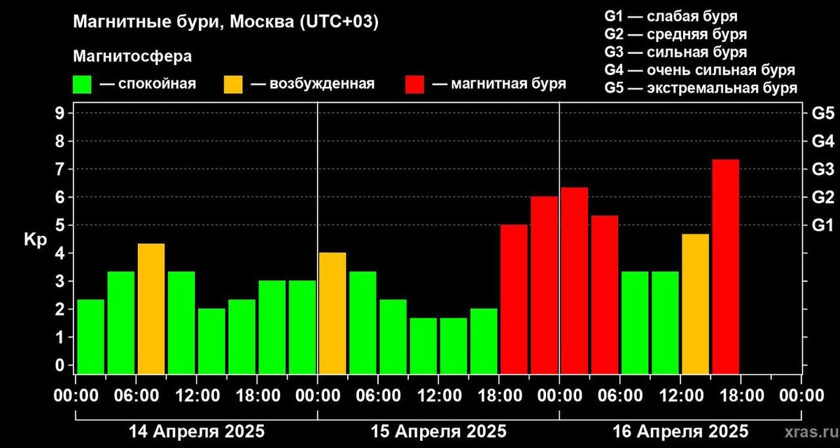 В России - мощная магнитная буря и она резко усиливается. Текущий уровень G3.3 (между сильным и очень сильным). Причина — изменение знака магнитного поля. Если пик продержится ещё 3 часа, ждём массовых полярных сияний.