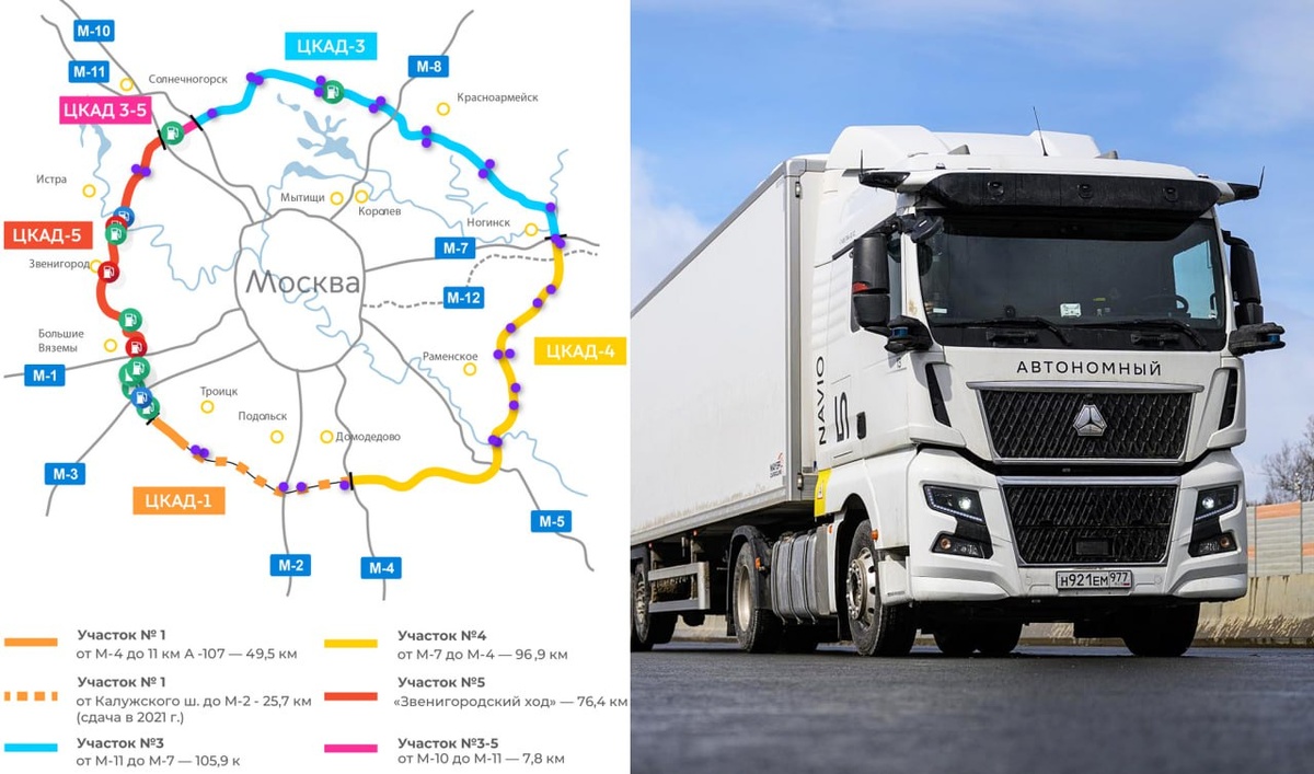 На ЦКАД открыли движение беспилотных грузовиков КамАЗ и Navio Первые беспилотные тягачи вышли на трассу М-11 "Нева" в 2023 году. С апреля 2025 года их можно встретить и на ЦКАД (Центральной кольцевой дороге). В следующем году ожидается их появление на M-12 "Восток". В проекте принимают участие: • производители беспилотных грузовиков: "КамАЗ" и Navio; • логистические операторы: АО "Национальный перевозчик", "Глобалтрак Лоджистик", "Магнит", Х5 Logistics, Wildberries; • ГК "Автодор" в качестве оператора инфраструктуры. Минтранс РФ прогнозирует, что внедрение беспилотных технологий на ЦКАД повысит скорость доставки (средняя скорость — до 90 км/ч), снизит риск аварийных ситуаций и сократит простои автопарка из-за нехватки водителей. Посмотрим. Напомним, что в Москве и Санкт-Петербурге ездят беспилотные трамваи, так что будьте внимательны. Сейчас в грузоперевозках главная проблема — это кожаные. Судя по мировым тенденциям, её скоро решат, особенно на магистральных маршрутах между крупн