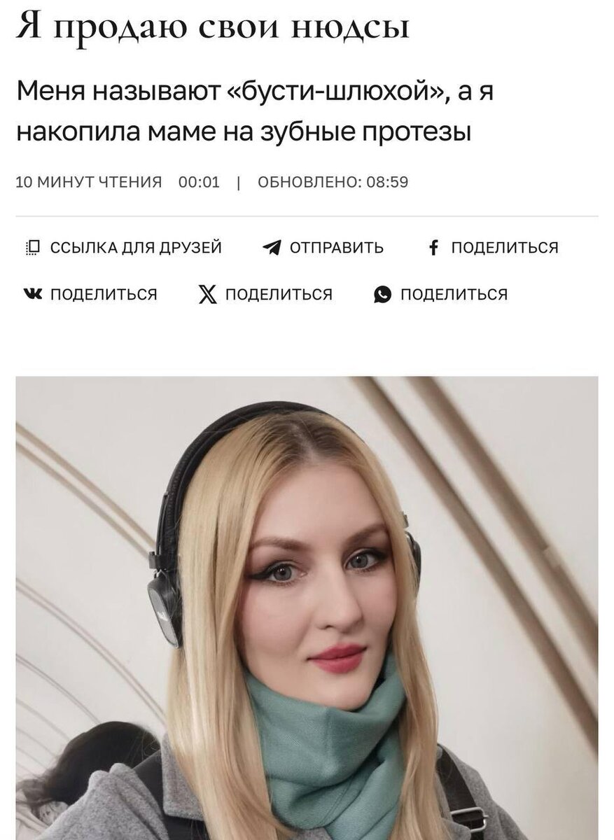 Зубы за нюдсы. Россиянка слила пикантные фотки в сеть, чтобы оплатить матери протезы на миллион и закрыть долги за хату. На официальную зарплату в 40к можно разве что продышать — пришлось крутиться. Мать не в шоке и спокойно заходит в комнату, пока дочка фотошопит голое. Капитализм: лечи зубы — раздевайся.
