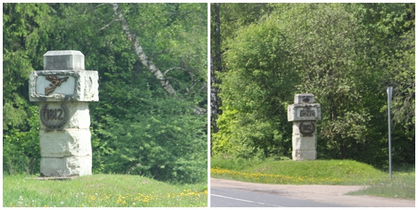 При выезде из Можайска на стеле написано "Доброго пути", а при въезде (на обратной стороне) Можайск, 1231 год.