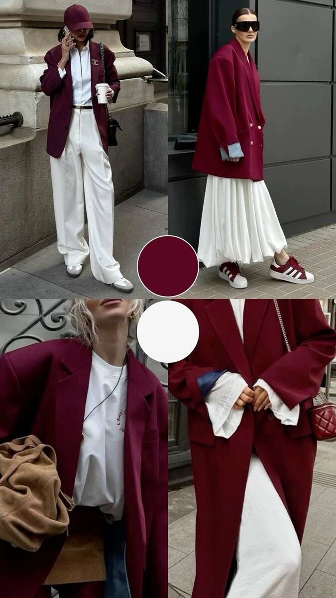 Цветовое комбо, которое говорит само за себя — бордо + молочный ⠀ Бордовый в одежде — это элегантность, глубина и характер ✨ А в дуэте с мягким, молочным оттенком он раскрывается особенно изысканно. Это сочетание идеально подходит для осени, зимы и даже ранней весны — тёплое, благородное и очень универсальное. ⠀ С чем носить: • Молочные брюки, юбки или платья + бордовый жакет/пальто — беспроигрышная классика ✔️ • Добавь акценты: кроссовки в тон, шапку, сумку или очки — и образ заиграет ещё интереснее • Ткани могут быть самые разные: шерсть, хлопок, деним — этот дуэт "работает" всегда 🧥👖 ⠀ Совет: добавьте в образ немного текстуры — замшевую сумку, вязаный шарф или кожаный ремень, и лук станет ещё глубже и атмосфернее 👜 #стилизация