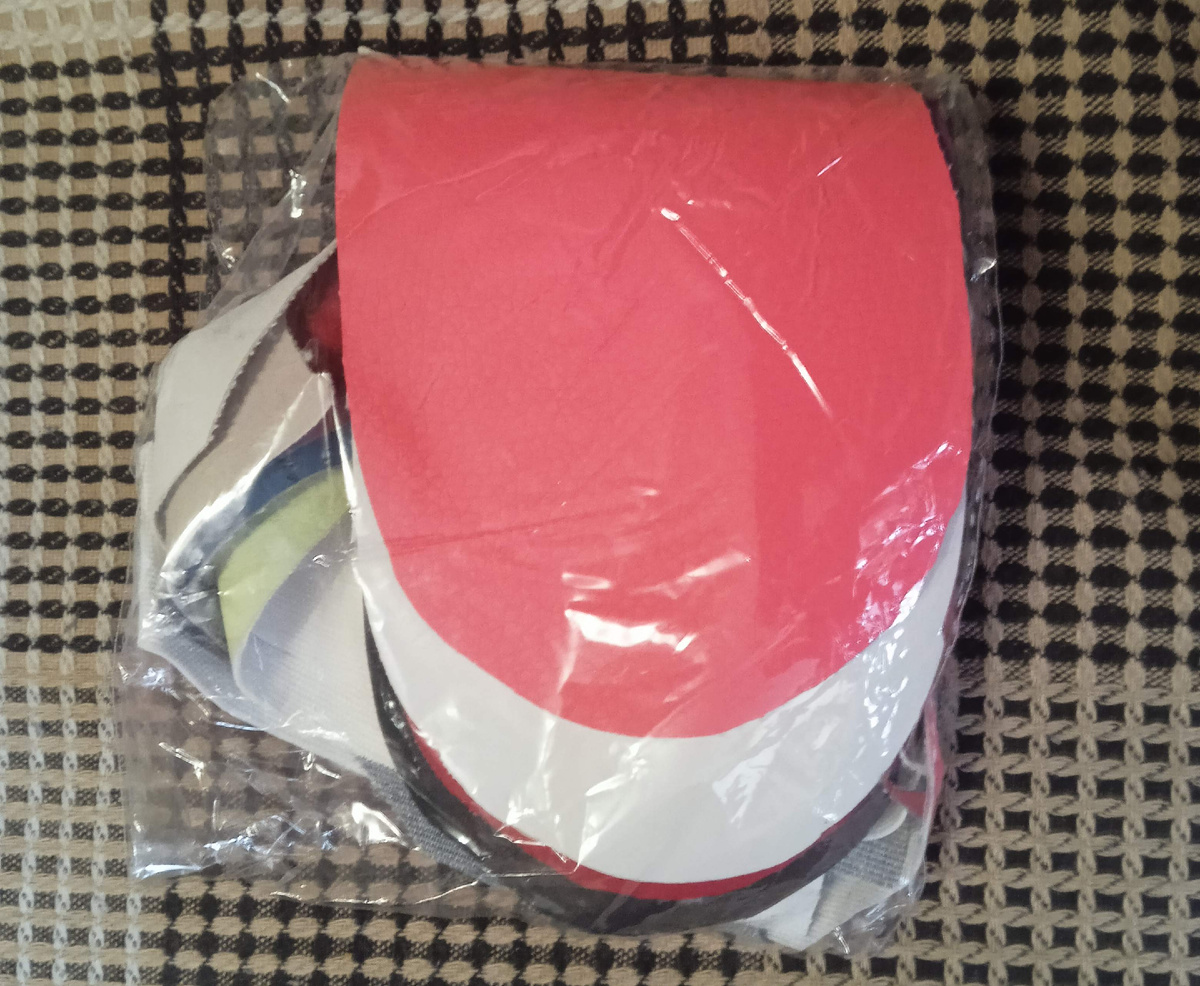 Кусочки разного цвета: красный, бежевый, белый, фиолетовый, розовый, чёрный, сиреневый, коричневый, синий и светло-зелёный (порядок произвольный, как уж разложились).
