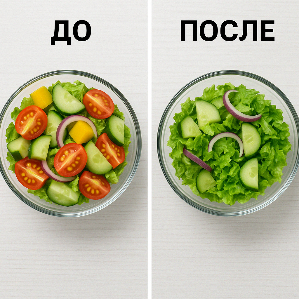 Овощные салаты были моим спасением. Летом — с огурцом и помидором. Зимой — с капустой и морковкой. Без заправки, без хлеба, иногда с ложкой масла. И всё равно — вес стоял, живот был вздут, энергия плавала. Я была в недоумении: я же на «правильном питании»! И вот на приёме у нутрициолога я пожаловалась:
