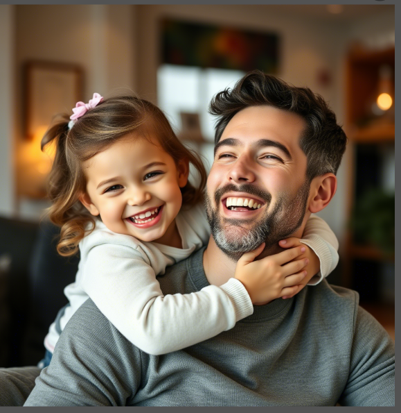 Бежит Леночка к папке своему, обнимаются, плачут.