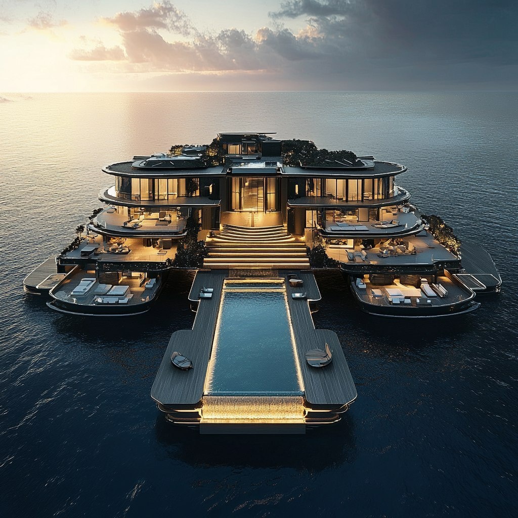 Создано на основе запроса: professional photography of a most expensive huge floating mansion in a middle of the sea