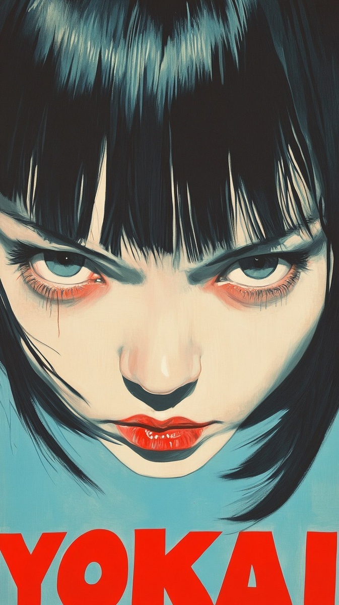 Создано на основе запроса: She is haunted by visions of yokai. Style of Japanese horror movie poster. Large red text "YOKAI" --- Автоперевод: Она преследует видения Йокая. Классно получилось? 🤔 https://dzen.ru/id/65c0c65c86e4f837c27b24d7 #ИИ #AI #нейросеть #midjourney #art