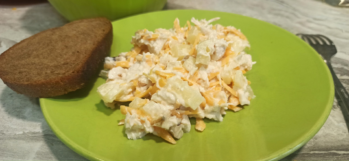 Салат "Тропический хруст" с отварной курицей и ананасом за 5 минут