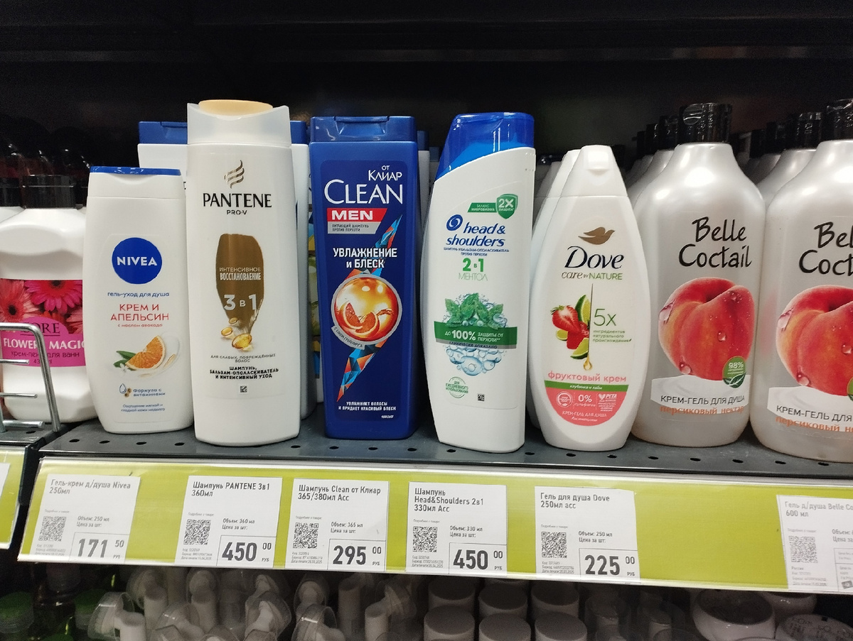 Впервые вижу "Dove" с ароматом клубники и лайма, но его запах просто великолепен, а кремовая текстура средства снижают его расход. У новинки от "Nivea" понравилась даже цена - за 171 рубль можно купить гель для душа "крем и апельсин" с маслом авокадо; также не видела раньше в этом магазине шампуней "Clean", его цена 295 рублей (тоже хороший, одно время только этот бренд и выбирала).