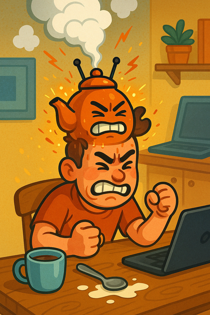 Ты просто хотел налить себе чай. Но крышка термоса не открутилась. — И ВСЁ. Жизнь бессмысленна. Мир несправедлив. Этот термос — личный враг. Почему так? Почему в обычный день тебя может вывести из себя пакет, который порвался, Wi-Fi, который подвис, или сосед, который чихает “слишком громко”? Спокойно. Это не потому что ты злой. Это потому что у тебя накопилось. --- 🧠 Мозг не бесится просто так Когда у тебя внутри всё спокойно — ты философ: > “Порвался пакет? Ну и ладно. Куплю новый.” А когда ты уставший, перегруженный, тревожный — даже комар в комнате звучит как вызов на дуэль. Мозг не бесится из-за одной мелочи. Он просто находит повод, чтобы выпустить пар. А повод всегда найдётся — ведь мир не идеален (особенно упаковка печенья). --- 🧨 Симптомы “эмоционального перегруза”: Бесит, как кто-то ест (даже если тихо) Хочется всех “отправить в лес” Мелкие задачи кажутся катастрофами Ты ведёшь внутренние диалоги с людьми, с которыми поссорился… три года назад --- ?
