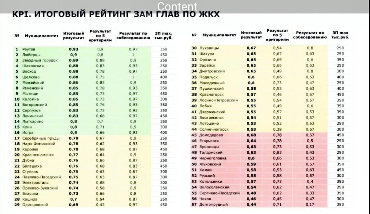 В сети появился рейтинг зам глав по ЖКХ. Реутов в топе, Долгопрудный в конце списка. Зато в Мытищах самая большая зарплата)