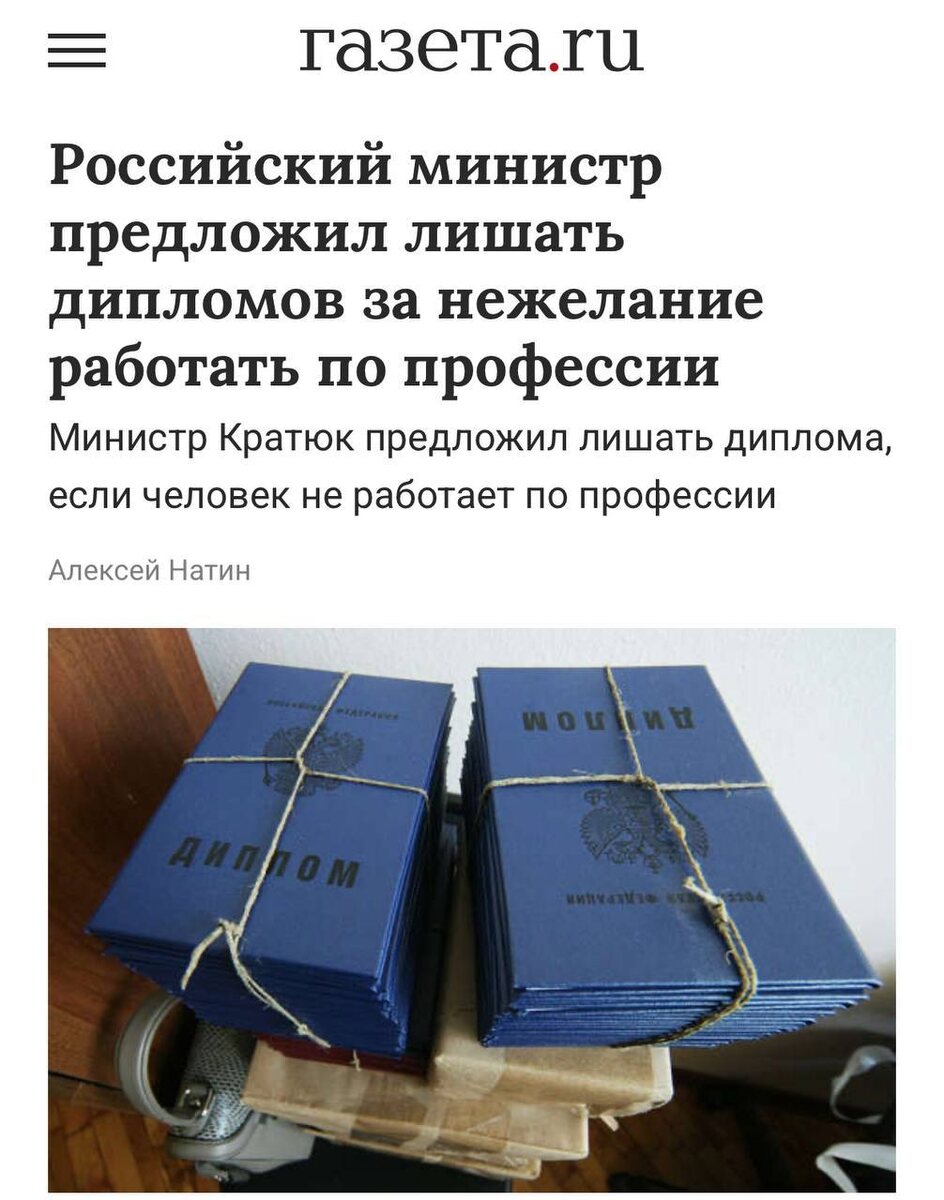 ⚠️Министр Денис Кратюк предложил отбирать дипломы у россиян, работающих не по специальности, чтобы решить проблему нехватки кадров в