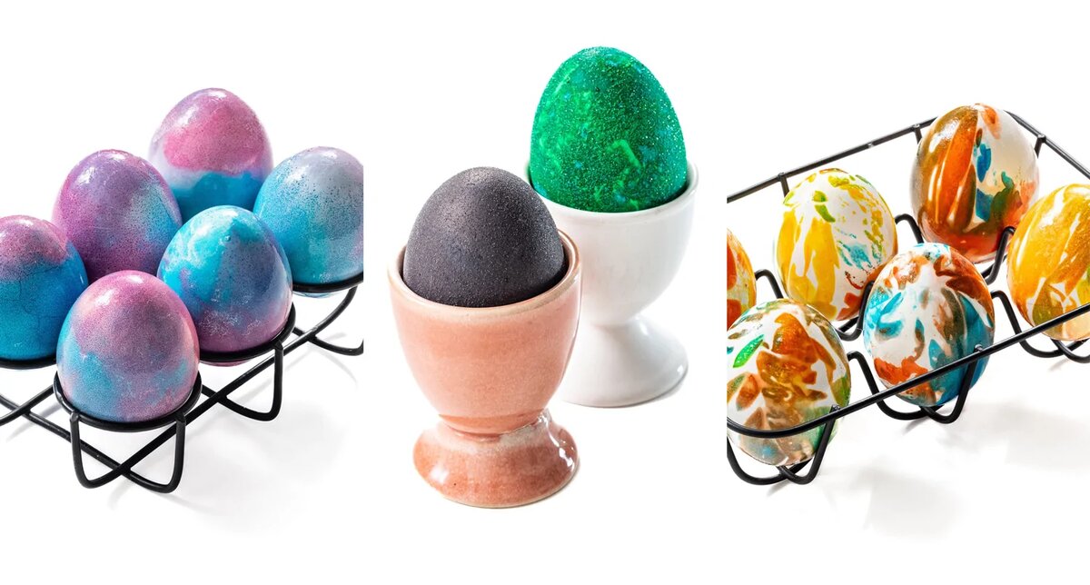 Каждую Пасху мы красим яйца и часто пытаемся придумать все новые способы покраски и рисунки. В этот раз мы окрасили яйца в соде, в салфетках и в вине. Собрали из этих рецептов полезный материал, а заодно присовокупили к нему два красивых пользовательских рецепта: покраска а-ля динозавровых яиц и покраска яиц в кружеве. Редкой красоты яйца, с космическим розово-голубым переливом. Тут краситель смешивался с содой и эту кашу мы хаотично наносили на яйцо. Чтобы поверхность скорлупы и цвет стали интенсивней, мы покрыли яйцо растительным маслом. Еще один новый для нас способ: мы завернули каждое яйцо в салфетку, а после уже начали этот кулек раскрашивать. Получилось красочно и совершенно непредсказуемо. Для тех, кто никуда не спешит. Тут два типа яиц: одни были покрашены в красном вине, другие — в белом с зеленым красителем. Также в покраске яиц участвовал сахар, который потом создал на поверхности скорлупы красивый сверкающий налет. А это уже эксперимент с салфетками, проводимый нашими чи