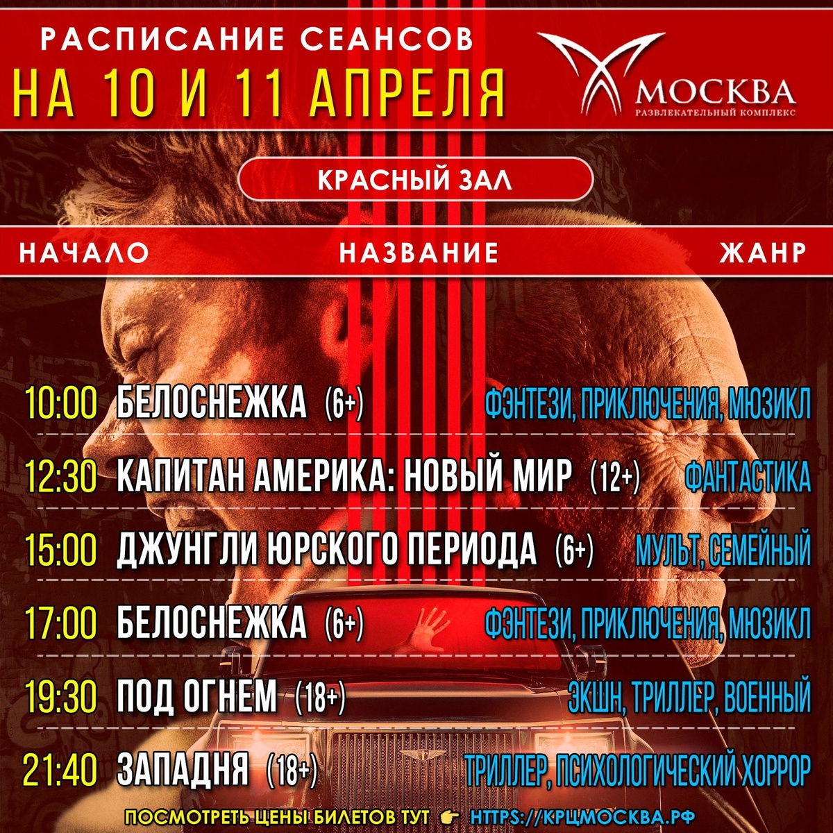 #расписание_сеансов на 10 и 11 апреля Посмотреть цену и купить билеты онлайн можно на нашем сайте https://крцмосква.рф/ и в приложении Google Play и App Store «Кинотеатр Москва, г. Каспийск» ▰▰▰▰▰▰▰▰▰▰▰▰▰▰▰▰▰ #купитьбилет #афиша #смотритевкино #крцмосква #каспийск #ценабилетов #кино #фильм #cinema #kaspiysk