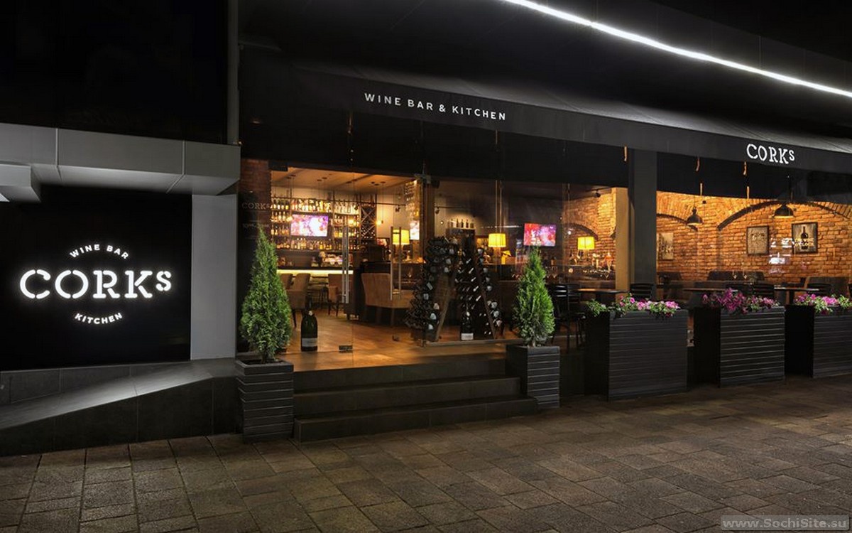 Ресторан Corks - это элегантный винный бар в Сочи. Corks находится в самом центре Сочи, на пешеходной Навагинской улице. Здесь можно устроить романтическое свидание, деловую встречу, или просто отдохнуть всей семьей. Интерьер настраивает на романтический лад, погружая гостей в непринужденную атмосферу европейского лоска. Ресторан предлагает отличный выбор типично "винных" закусок по демократичным ценам. Например, мидии "киви" с пармезаном и авокадо подаются за 580 рублей, тартар из говядины - за 680, "винные пробки" с копченым угрем - за 480 рублей. Пасты и ризотто стартуют от 680 рублей. Винная карта ресторана поражает своим разнообразием (больше 100 позиций, в том числе десяток - по бокалам). Средний чек на полный ужин - от 1500 рублей на человека (без учета вина). Гости называют ресторан атмосферным и вкусным. Десяток лет, которые он "продержался в элитной локации в центре Сочи", тоже говорят о многом. Посетители отмечают богатый выбор вин и сыров, а также красивую подачу блюд. Крит