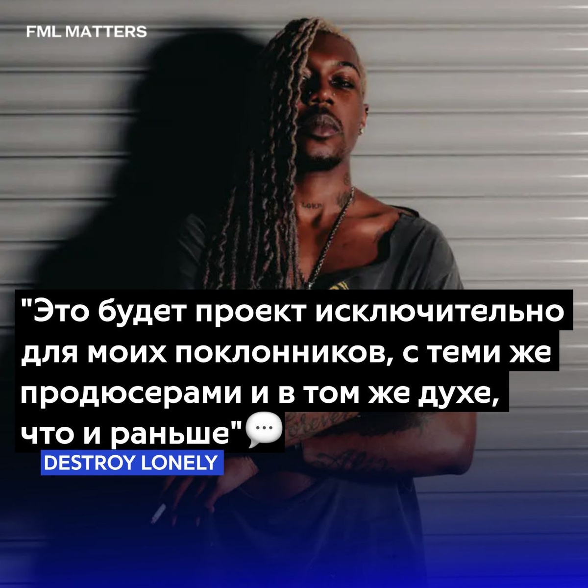 ❗️ DESTROY LONELY ДРОПНЕТ ДВА АЛЬБОМА В ЭТОМ ГОДУ! Дестрой в интервью для издания «Clash Music» заявил, что в этом году он планирует выпустить два релиза: сольный альбом «ᐸ/3³», и долгожданный совместный проект с Кеном Карсоном. «Работа практически завершена, и новая музыка выйдет в 2025 году. Я записывал её в самых разных местах – в дороге, гримерках, подвалах – просто наслаждаясь процессом», — добавил Дестрой 💀 FML MATTERS