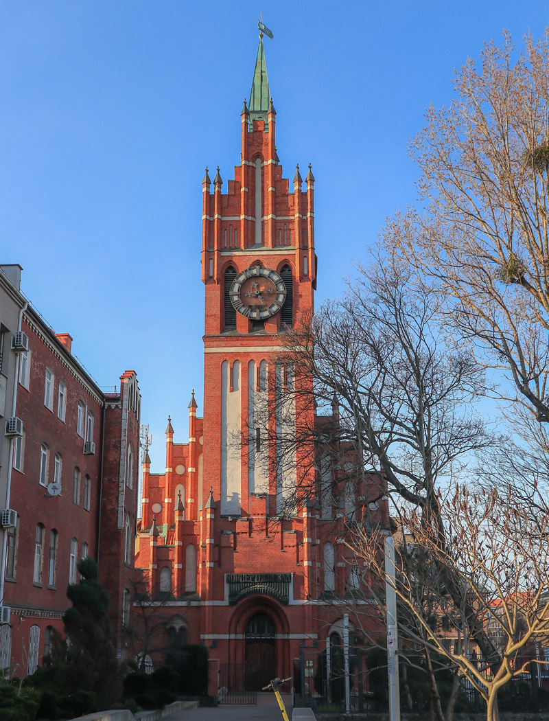 Кирха была построена по адресу Оберхабербердштрассе, 21А, сейчас это улица Богдана Хмельницкого, 61А. Сюда мы пришли в первую прогулку по городу, от Южного парка, где мы, главным образом, смотрели Фридландские ворота.