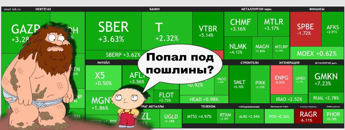 "Я люблю китайский народ, и именно поэтому он достоин большего!" Д. Трамп Торговая война набирает свои обороты, проснулась советь у Трампа и он решил сделать единый тариф для всех, но не китайцам, он китайцев любит больше других. Основная сессия сегодня прошла в глубокой скорби, индекс Мосбиржи потерял 3,5%, негатива добавила дешевеющая нефть, которая достигла 58,62 зеленых бумаг за бочку, но затем пошла вверх. (Индекс Мосбиржи (+3,4%) на вечерней сессии). Вечерняя сессия подкинула положительных эмоций, в овальном кабинете решили, что всех нужно уровнять десятью процентами, что поддержало рынок. Читаю пульсяшный пульс, и диву даюсь мыслям пушистых игроков: Товарищи, введенные и пересмотренные тарифы никак не касаются Российской Федерации, у нас санкции и их никто не отменял. Хотя если, по правде, то торговая война США и Китая несомненно в долгосрочной перспективе повлияют на весь мировой рынок. Не забываем о том, что у китайцев есть козырь в рукаве в виде трежерис, но что-то подск
