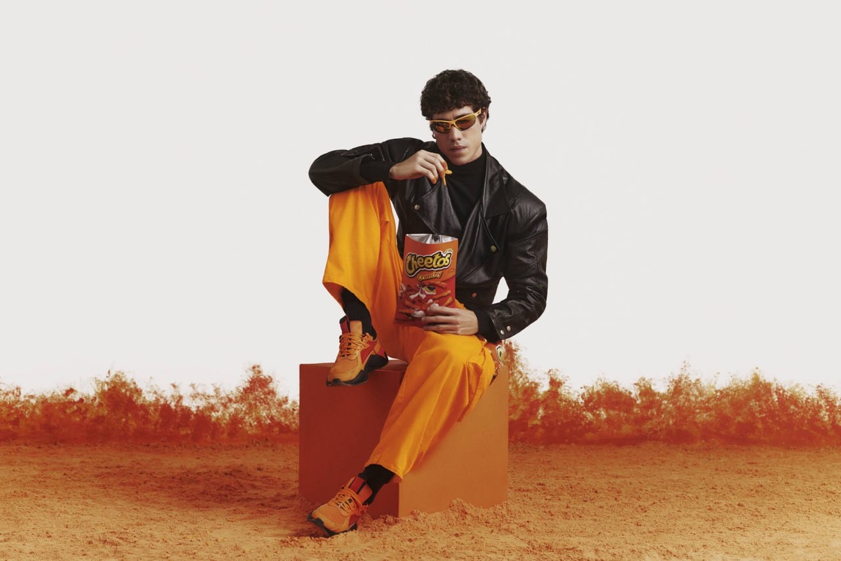 🩵 Cheetos решили одну из самых насущных проблем: оранжевые пальцы после пачки чипсов, выпустив Cheetos Pants — ярко-оранжевые брюки с тканевыми вставками на бёдрах, по текстуре напоминающими полотенце. Чтобы можно было вытирать руки прямо о них — удобно, практично и в духе бренда. Ещё один бонус — карманы, в которые идеально помещается пачка Cheetos. Штанцы получились не только ироничными, но и вполне носибельным предметом гардероба🧡