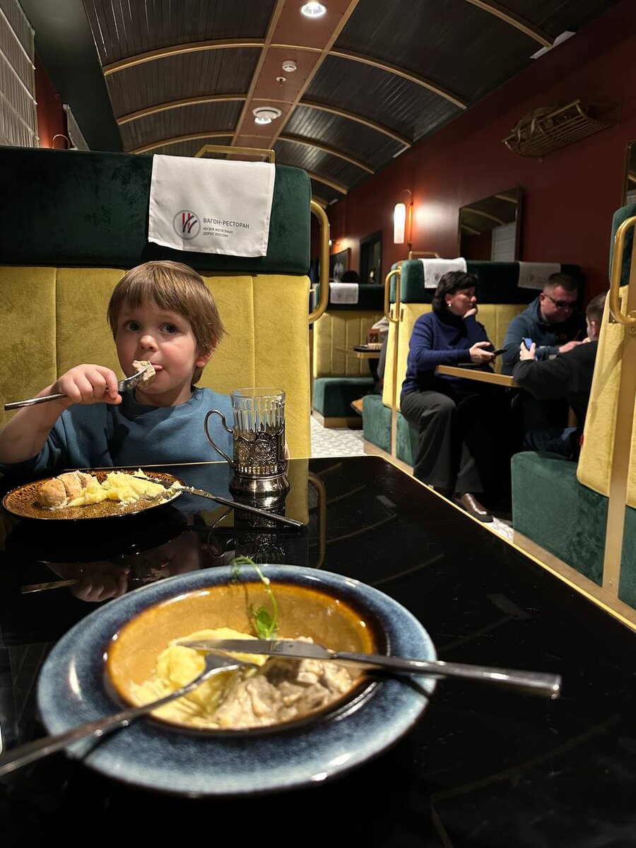 В этот раз мы еще и в местное кафе сходили Оказалось, здесь очень даже прилично кормят. Ценник +/- как везде в городе, чуть выше среднего, но не прям очень дорого. Порции хорошего размера и вкусно. Есть детское меню. Мы брали: Бефстроганов с пюре Котлетки с пюре (из детского меню) Чайник чая (иван-чай с облепихой) Вода 0,5 Мороженое Все вышло в 1750₽ Если ребенок не соглашается выходить из музея, а кушать уже хочется - более чем приличный вариант, где можно подкрепиться👌🏻