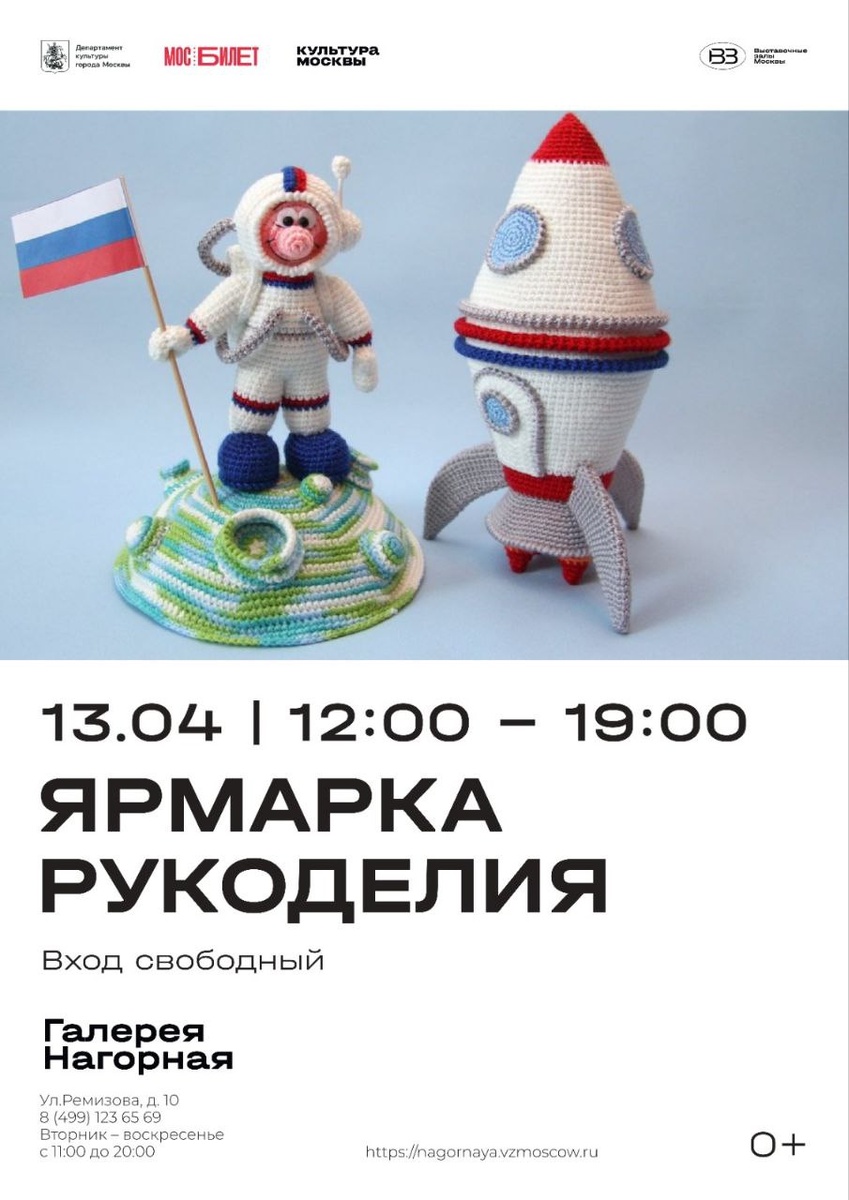 13 апреля 2025 (воскресенье) с 12:00 до 19:00 мы приглашаем Вас в Галерею «Нагорная» Объединения «Выставочные залы Москвы» на весеннюю ярмарку рукоделия, которая соберет мастеров из района «Котловка» и других районов города Москвы. Как всегда вас ждут: бесплатные мастер-классы мастериц, выставки живописи, лотерея подарков ручной работы: украшений, сувениров, игрушек. Запланированы следующие мероприятия: с 12:00 до 19:00 — Ярмарка изделий ручной работы с 12:00 до 19:00 — Посещение выставки живописи "Москва — Крым" членов Союза художников России и Московского союза художников Ольги Мельниковой и Константина Селезнёва, а также посещение Художественного салона галереи «Нагорная». 12.00 Открытие. Танцевальная композиция артистки балета и хореографа Московского Камерного концерта Марии Ждановой. 12.15-15.00 Мастер-класс «Создаём сувениры из старых вещей» (бесплатно, по регистрации на https://tefida.world/o-fonde/meropriyatiya/paskhalnyj-apsajkl-sozdajom-suveniry-iz-starykh-veshchej.html ) 12