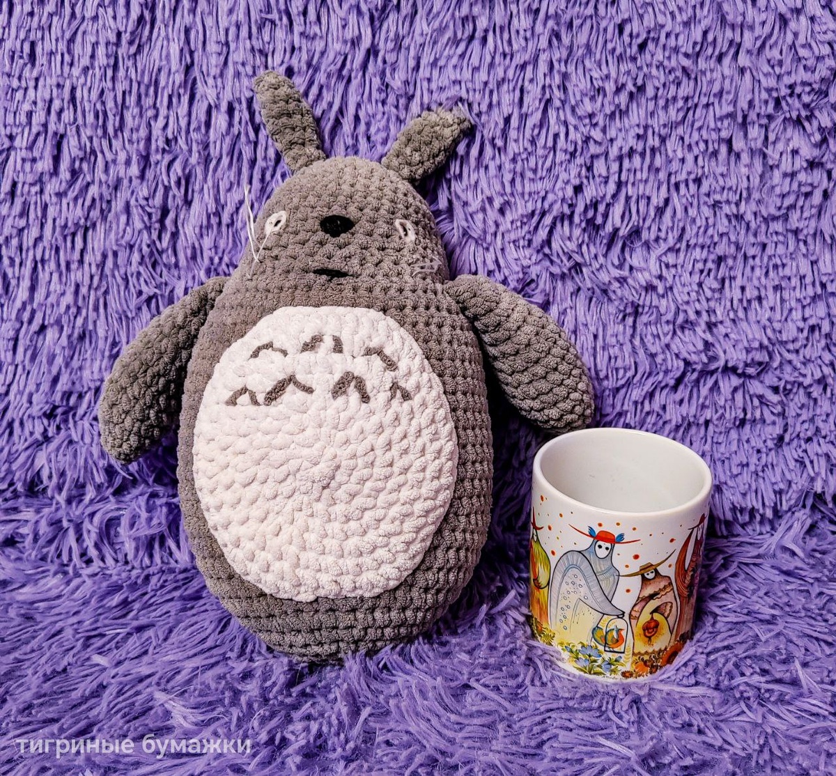 Вчера я получила коробочку счастья, которое было просто необходимо и, как же удивительно, когда тебя чувствуют на расстоянии. 💜 Теперь у меня есть Тоторушка. Мой личный Тоторо, который будет оберегать и греть сердце и душу, а ещё полочку с BTS, но это секрет. 🤫🤭 Знаете, как давно я мечтала о таком плюшевом друге? С 2008! Это просто словами не передать... Его связала чудесная творческая душа под таким милым ником Ёжик в тумане 🦔 А еще внутри меня ждали сюрпризы в виде наклеечек с гусиками🪿🪿🐥плюшевая лягушка🐸и мини копия моей Люси❤️ Спасибо большое🤗на душе такая радость. Лягушонка затискала, милейший! Рисунок на кружке очень красивый, существа будто из миров Миядзаки, от того и кажутся добрыми, молчаливыми хранителями дома.🥰