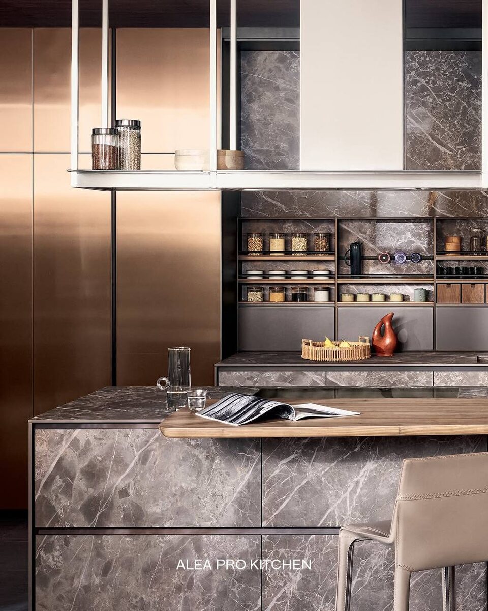 Современная кухонная система Alea Pro от Poliform Вдохновленная потребностями современной жизни: открытые блоки превращают остров в функциональный центр, а линейные формы фасадов придают динамику рабочим зонам. Двери витрин навесных шкафов с внутренней подсветкой создают игру прозрачных поверхностей. Геометричный дизайн усовершенствован обилием оригинальных деталей: центральный остров кухни Poliform Alea Pro со столешницей Planar, выполнен из inalco MDi Stone brown. Глубокий натуральный оттенок кухонного фасада поддерживает статус приглушенной роскоши, а акцентные барные стулья придают интерьеру неповторимый вид. Представлена в шоуруме по адресу: Пятницкая, 39. #трио_кухни Для связи: @triointeriorbot
