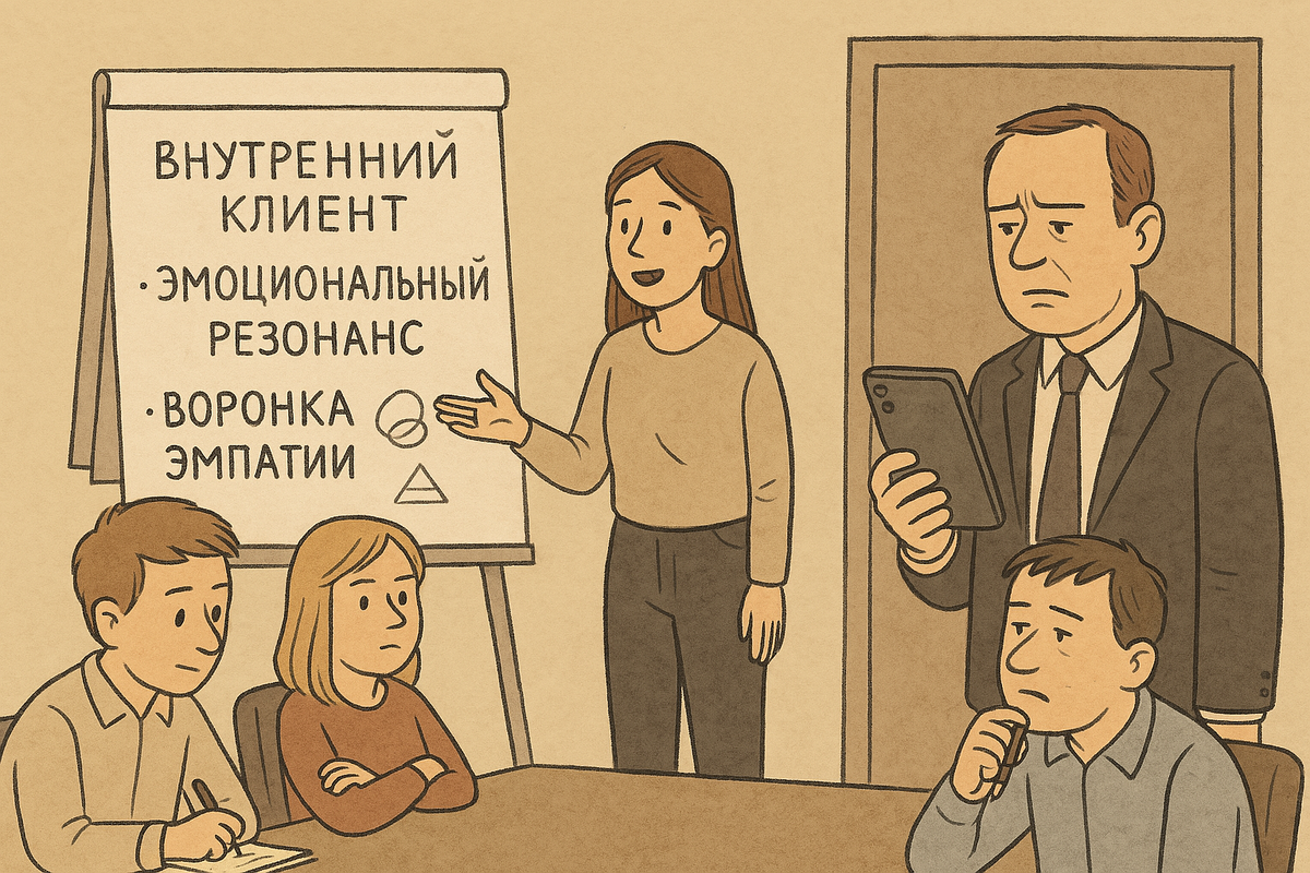 Её глаза горят. «Коллеги, продажи — это больше не конверсия. Это сопричастность. Мы должны не “закрывать сделку”, а открывать чувство причастности к бренду!» Все молчат. У кофемашины кто-то тихо кашляет. Сцена 2. Менеджеры.