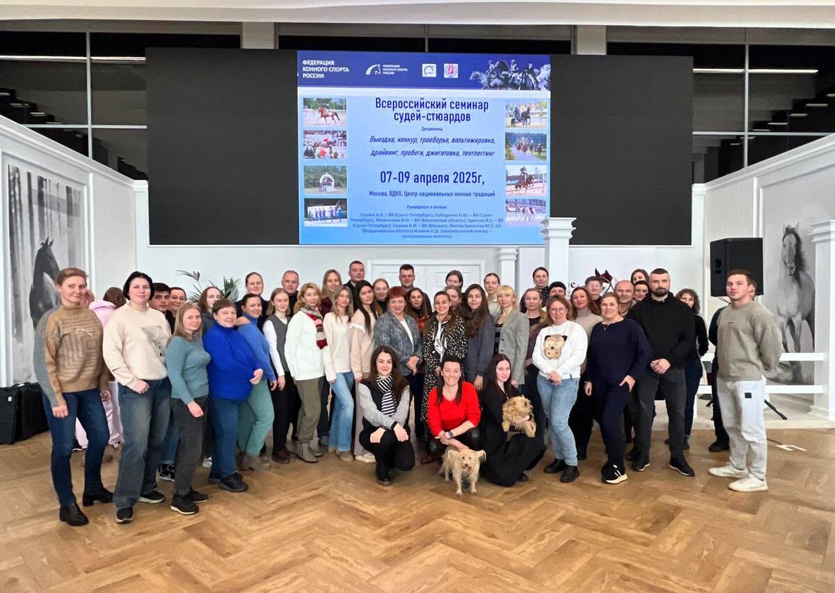 Сегодня в Центре национальных конных традиций прошел заключительный день Всероссийского мультидисциплинарного семинара для судей-стюардов. 60 специалистов из 18 регионов России приняли участие в мероприятии, чтобы актуализировать свои знания, изучить нововведения в правилах и разобрать нестандартные ситуации, возникающие в работе. По окончании семинара все участники прошли тестирование с последующей аттестацией в специализации «судья-стюард». Организаторы: Кремлёвская школа верховой езды и Федерация конного спорта России