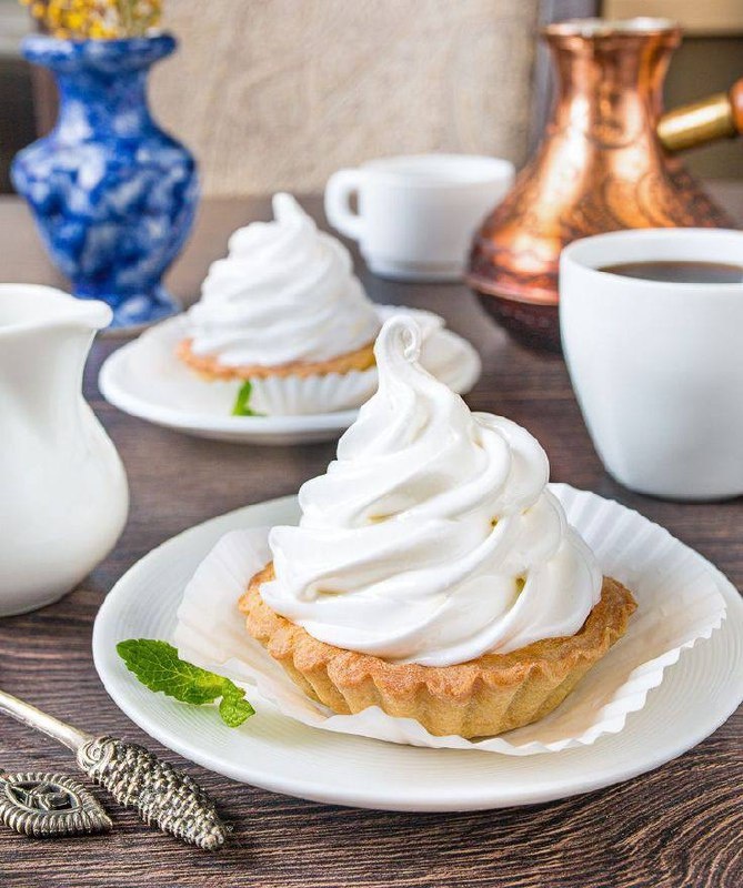 ◦ С помощью кондитерского мешка с насадкой заполните корзиночки белковым кремом.
