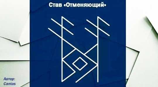 Можно назвать универсальной таблеткой на все случаи жизни. Он работает в абсолютно любой жизненной области, но, естественно, только при правильном оговоре. Данная чудодейственная вязь позволяет вам остановить, прекратить, отменить любой процесс — будь то развод или болезнь, потеря ценной вещи, насланный негатив, набор лишнего веса, увольнение на работе и всё, что только может прийти в голову. Можно сказать, что эта формула — как кнопка «назад» в браузере, возвращающая вас на предыдущую страницу. И самое главное — вязь действительно работает, что подтверждают многочисленные положительные отзывы на тематических форумах. Руны, входящие в став и их работа. Связка из двух Ансуз, двух зеркальных Феху и Хагалаз отменяет или перепрограммирует то, что нужно отменить. Вязь Соулу – Ингуз ромбиком – Беркана – на месте оборванных привязок создаёт позитив и благоприятные события. Наносится формула, в большинстве случаев, на собственную фотографию или лист бумаги (если отменяем что-то, не связан