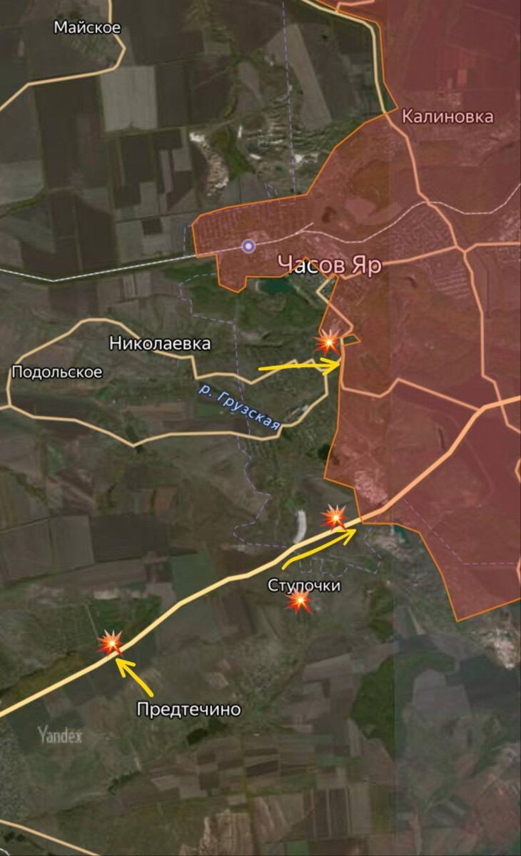 🪂 Часовоярское направление. Противник предпринимает усилия для удержания рубежа и недопущения наступления наших войск на Константиновку, которая у вражеских войск уже давно является фортецией. Для деблокирования группировки у Днепровского пруда ВСУ провели накат со стороны Николаевки, после спешивания пехоты и рассредоточения в лесной зоне наши войска начали работать по противнику, в результате контратаки враг потерял большую часть группы, несколько человек ещё пытаются спрятаться, воздушная разведка выявляет остатки. У Ступочек противник также пытается накапливать резервы, в южной части села артиллерия 6-й дивизии уничтожила ПВД противника, также была накрыта бронегруппа врага при попытке выдвинуться от Предтечино к трассе Т0504. С обеих сторон активно работают расчеты БПЛА. Дневник Десантника 🇷🇺 Подписаться