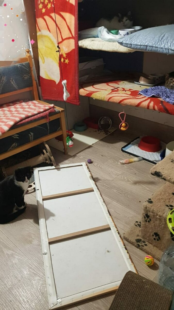 #жизнь #кошки #помощь #забота #любовь #передержка_лапсик И снова, Здратуте!)🤔 Пока я в отъезде, Светлана на работе, Женечка пришла в обед проверить выздоравливающих и поменять наполнитель! 🤗 И что же ее ожидало? 😳 Вот такой Сюрпрайз устроили котики Жене!🤷 Даже картину свалили! Как обычно, никто не виноват! 😉 Просто паиньки сидят, а кто-то спящим притворяется.🤷🤔 В общем Жене пришлось убираться по полной программе!😔 +79969591184 +79114803040