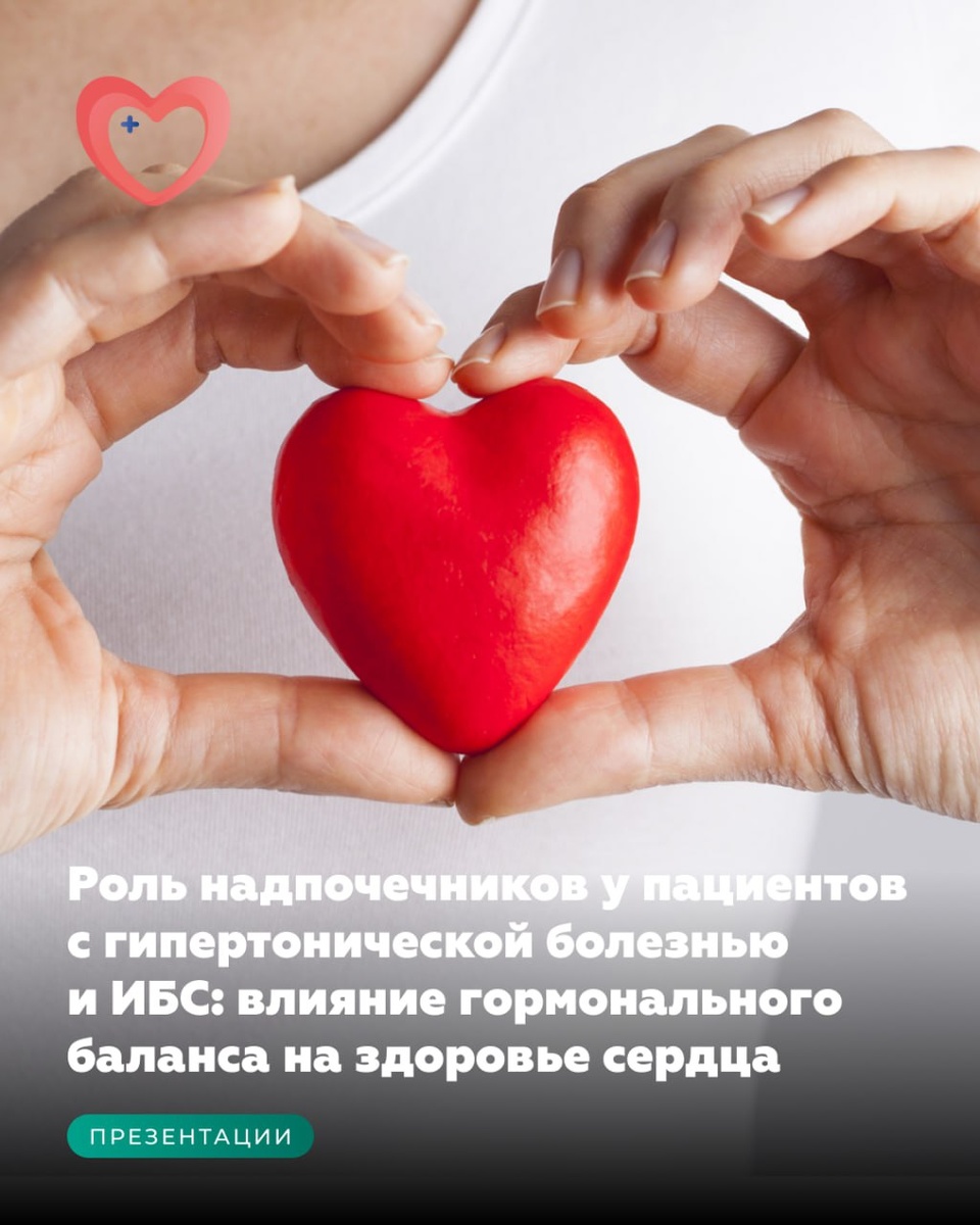 #Презентации Роль надпочечников у пациентов с гипертонической болезнью и ИБС: влияние гормонального баланса на здоровье сердца ❤️ ⠀ Надпочечники играют ключевую роль в регуляции артериального давления и сердечно-сосудистой системы через выработку гормонов, таких как адреналин, норадреналин и альдостерон. При гипертонической болезни избыточная секреция альдостерона приводит к задержке натрия и воды в организме, что вызывает увеличение объема циркулирующей крови и повышение артериального давления. В свою очередь, избыточная продукция адреналина и норадреналина усиливает сосудистый тонус и увеличивает частоту сердечных сокращений, что создает дополнительную нагрузку на сердце и ухудшает течение ишемической болезни сердца (ИБС). ⠀ Дисфункция надпочечников при гипертонической болезни и ИБС усугубляет патологические процессы, такие как гипертрофия миокарда, ухудшение кровоснабжения сердечной мышцы и повышение риска острых сердечно-сосудистых событий, включая инфаркт миокарда. Хронический ст
