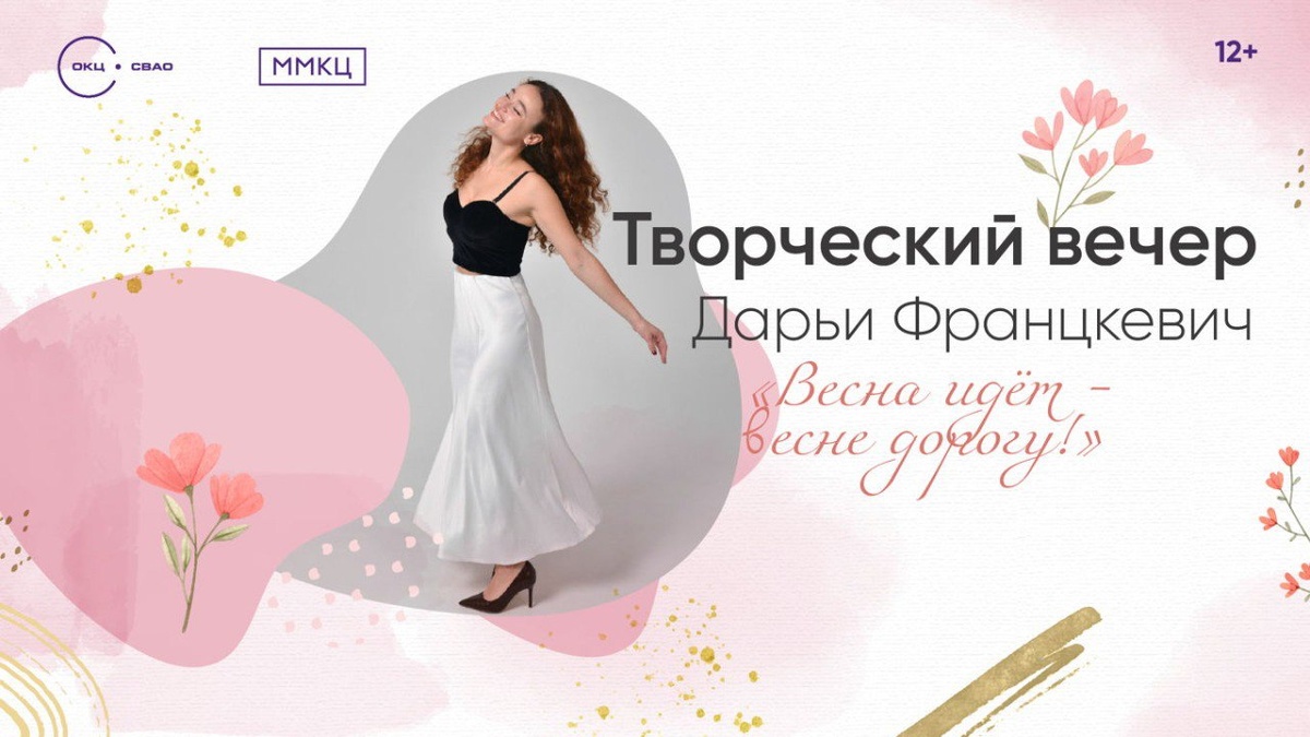 🗓️12 апреля 2025 года Творческий вечер Дарьи Францкевич "Весна идет - весне дорогу!" 12 апреля в 18:00 в Московском многофункциональном культурном центре пройдет долгожданный творческий вечер талантливой певицы Дарьи Францкевич под звучным названием "Весна идёт – весне дорогу!". Это мероприятие станет настоящим праздником музыки и весеннего вдохновения, приглашая всех любителей песни погрузиться в атмосферу надежды и любви, которой так не хватает в повседневной жизни. В рамках вечера Дарья исполнит подборку лучших композиций о весне и любви, которые тронут сердца слушателей и создадут яркое настроение. Каждый номер будет наполнен искренними эмоциями и глубоким смыслом, отражая все прелести весеннего пробуждения природы и веселья, которое приносит этот замечательный сезон. Их нежность и таинство, весёлый настрой и романтические переживания найдет отражение в песнях, созданных как классиками, так и современными авторами. 🕗 Сбор гостей 18:00 🗺️ Местоположение: Москва, Ярославское