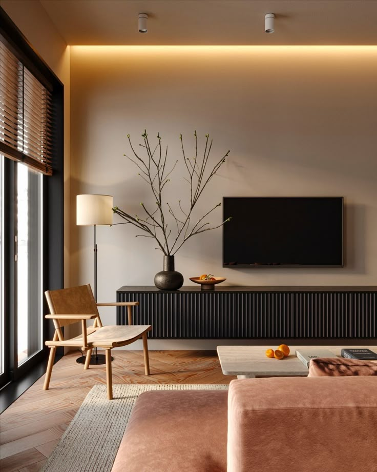 - Недостаток света: если ваша гостиная ориентирована на север или находится в тени, выбирайте светлые и теплые оттенки, такие как песочный, молочный или персиковый, чтобы добавить тепла и света в пространство.