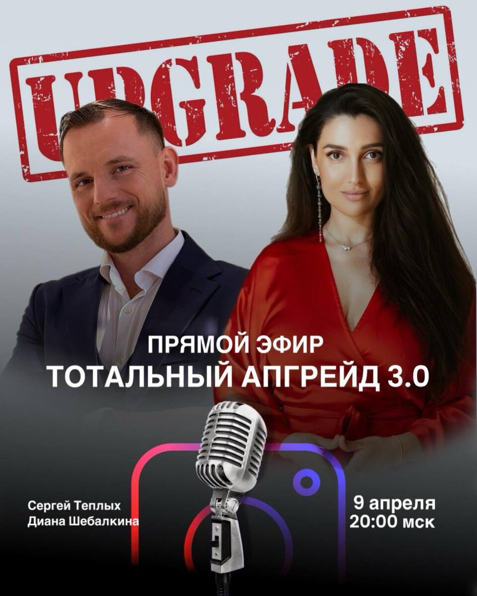 ТОТАЛЬНЫЙ АПГРЕЙД 3.0 Друзья, у меня для вас новость 🔥 1-7 мая состоится мой третий РЕТРИТ в Дубае 🇦🇪 Сегодня в 20:00 мы анонсируем это событие в прямом эфире вместе с Дианой Шебалкиной – мастером тантры и сексологом ✨ ✅ Раскроем наполнение ретрита и познакомим вас с программой ✅ Обсудим практики и терапию, которая будет проходить в рамках ретрита ✅ Расскажем о том, для кого этот ретрит и как на него попасть 🔔 Включайте уведомления, чтоб не пропустить — встречаемся в Instagram в 20:00 МСК