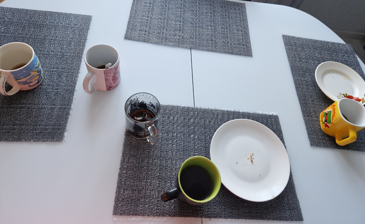 Всем привет! В последние два дня на меня напала лень по поводу мытья посуды. Если раньше грязную посуду на ночь никогда не оставляла. Для меня это было неприемлемо. То сейчас плюю на это дело. Но утром об этом сильно жалею. Всё-таки перед завтраком не хочется сначала со стола всё убирать. Такая картина в последние дни меня встречает по утрам Плюс еще гора в раковине. В полусонном состоянии убираешь всё это добро со стола. Варишь себе сосиски и завариваешь кофе. Обычно у меня на завтрак сосиски с майонезом. В последнее время стараюсь лишнего ничего покупать. Только самое необходимое. А то при нынешних ценах на продукты скоро без штанов останешься. Но сначала перед выходом в магазин захожу в приложение Магнит и активирую все персональные приложения. Не забывая зайти ещё там в раздел "Клубы". Там тоже предложения есть. Например, у меня сейчас хорошее предложение на Растишку. Ребёнку часто покупаю продукцию этого бренда. А вот и мои покупки. Ничего лишнего нет. Покупка на 42