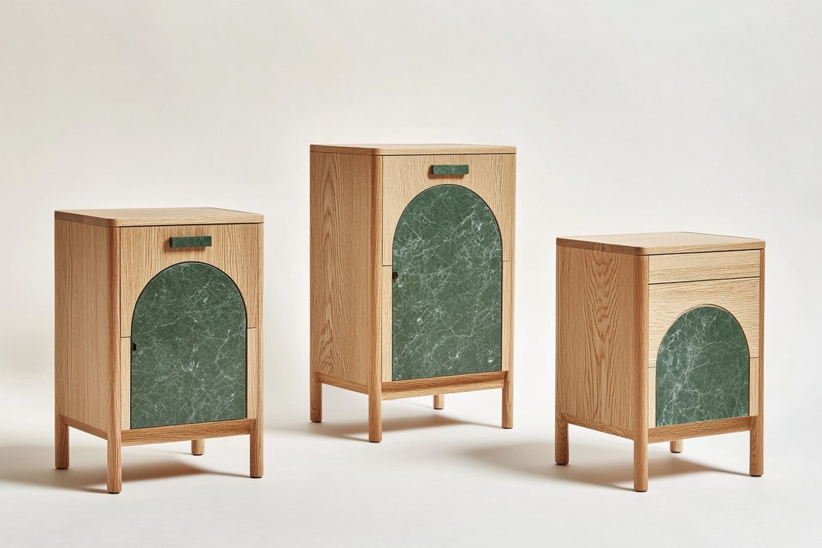 Создано на основе запроса: a matching set of identical style nightstand, dresser, tall boy, light oak wood, doors, the small handles on the doors are a semicircle cut emerald green marble, the legs are tubular thin, they are identical the only difference is the sizes, modern luce style, white background studio shoot --- Автоперевод: Соответствующий набор идентичных тумбочек стиля, комода, высокого мальчика, светло -дуба, дверей, маленьких ручек на дверях - это изумрудный мрамор с изумрудом, ноги тонкие, они идентичны. Как тебе такой вариант? 🤔 https://dzen.ru/id/65c0c65c86e4f837c27b24d7 #ИИ #AI #нейросеть #midjourney #art